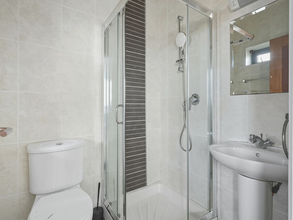 Fully tiled. WC, WHB & shower.