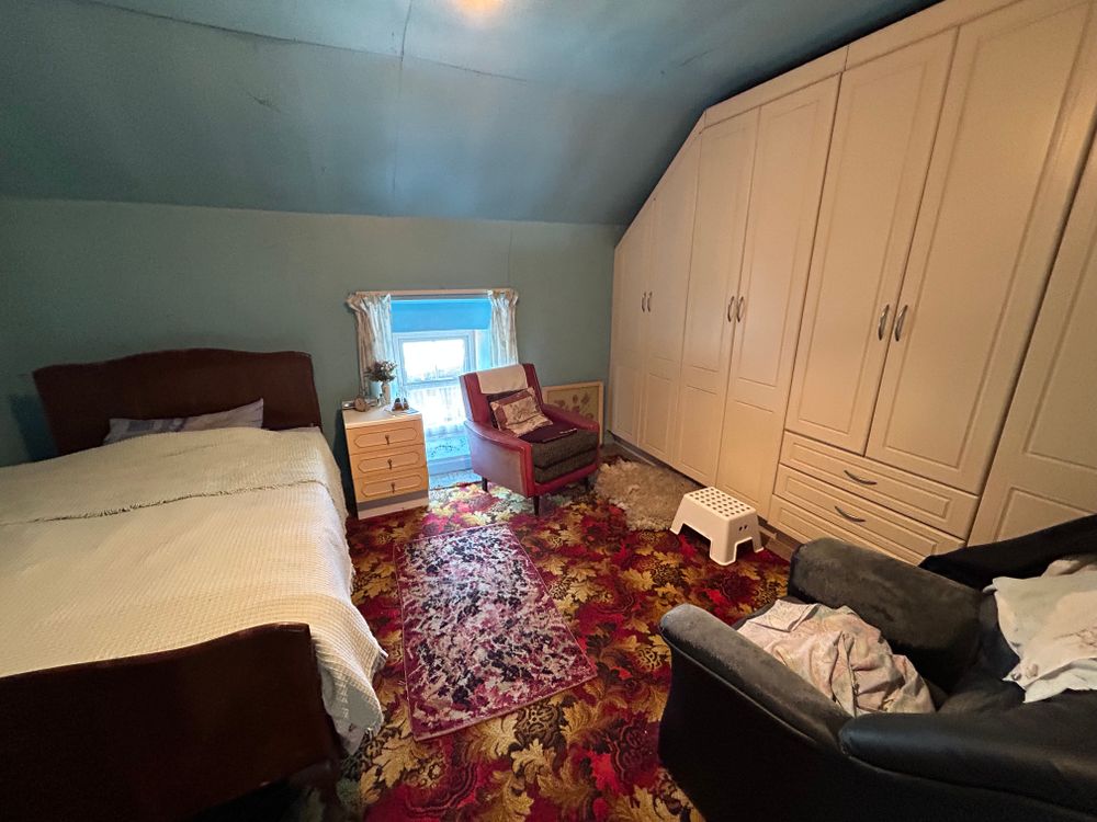 Ground floor bedroom with carpet flooring and a rear window.
