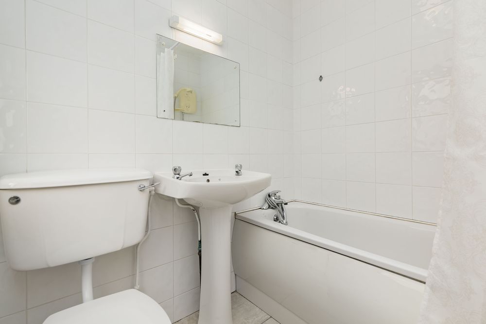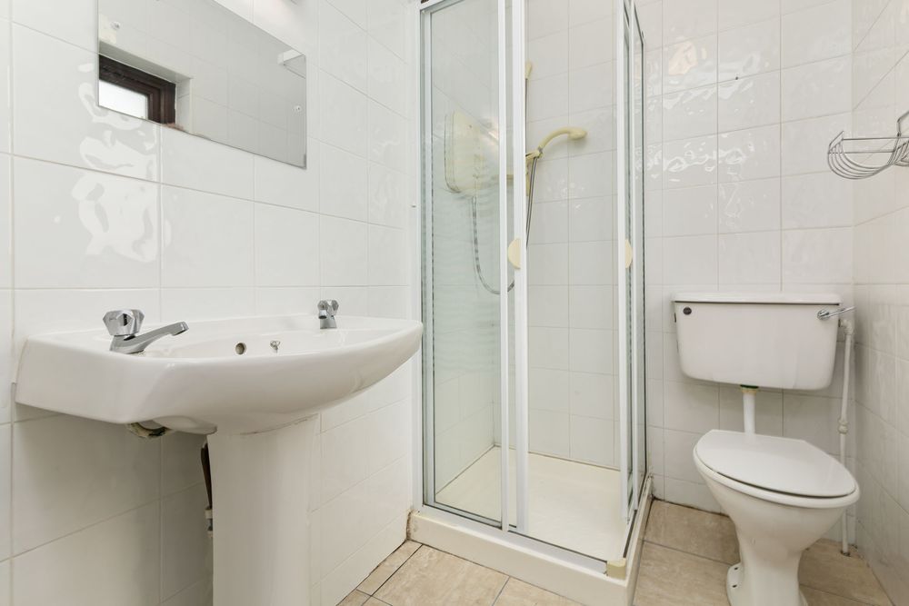 Fully tiled floor to ceiling. Electric shower. Bath.
