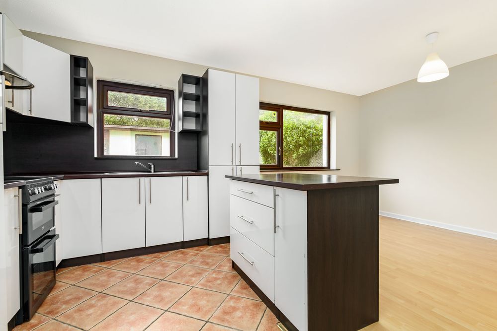 Laminate wood and tiled floor. Kitchen island. Fully fitted kitchen.