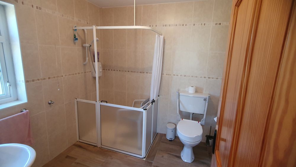 Walk in wardrobe, En-suite with W.C., W.H.B., electric shower, tiled walls