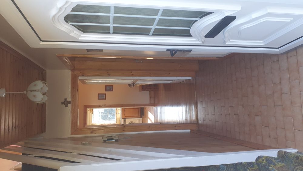 Fireplace with wood surround and tiled hearth, pine painted ceiling, T.V. Point, Wooden floor