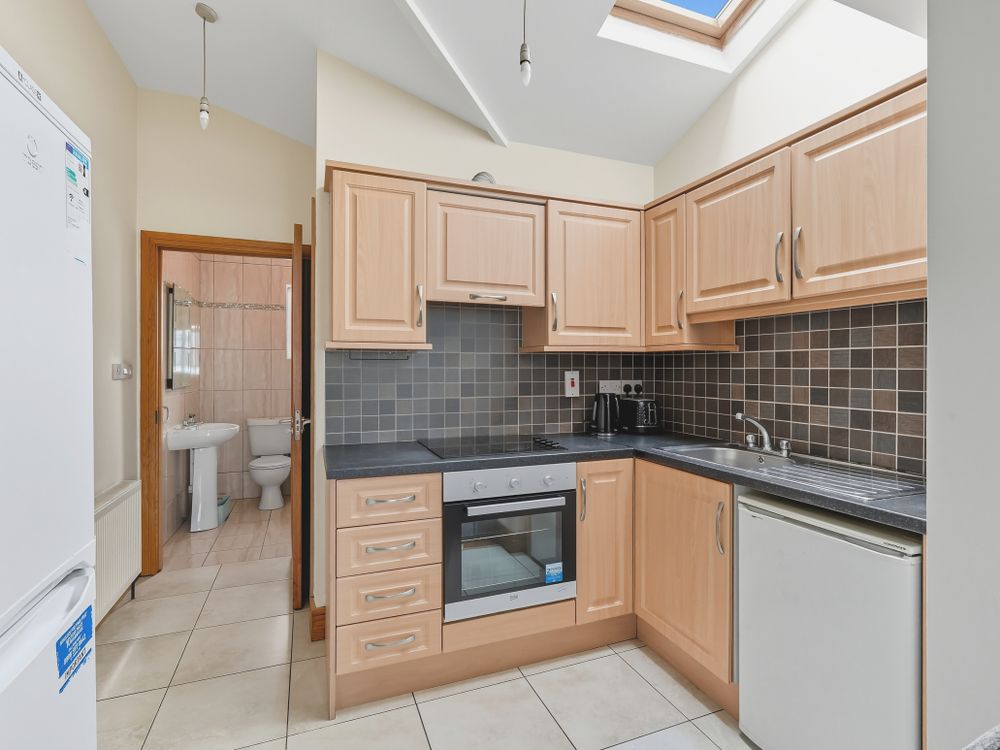 Finished with tiled flooring, fully fitted kitchen and has a downstairs bathroom off to the rear. There is a Velux window over the kitchen area adding additional natural light.