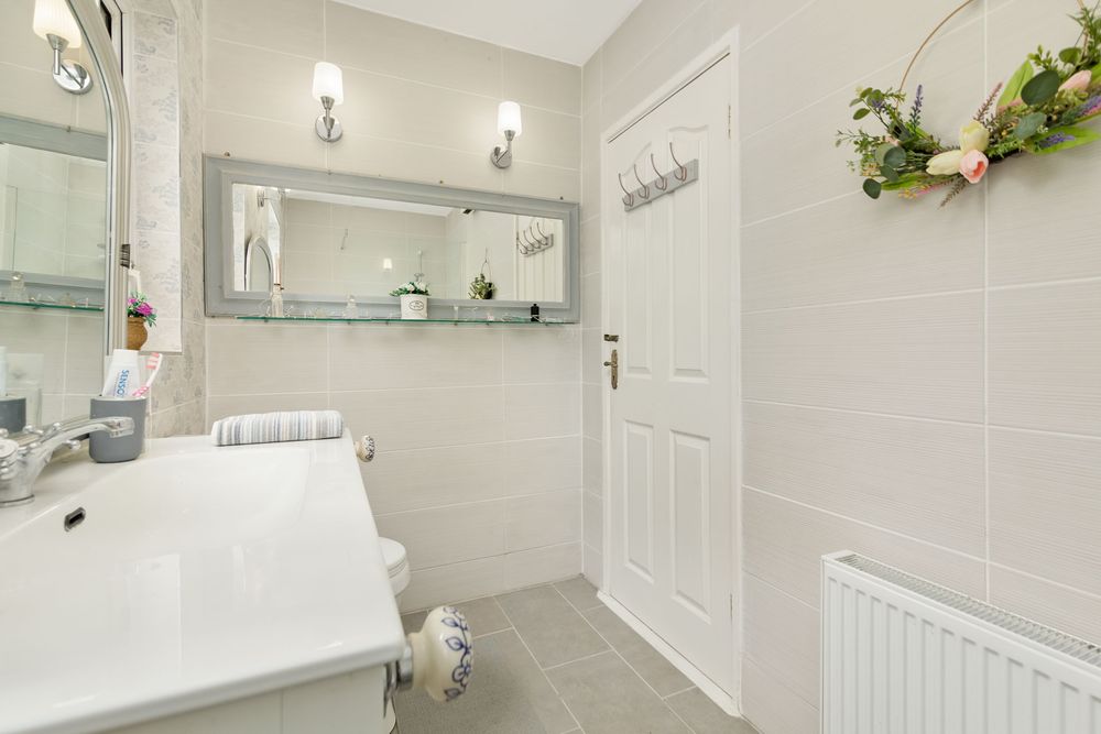 Tiled floor to ceiling. Electric shower. WC & WHB.