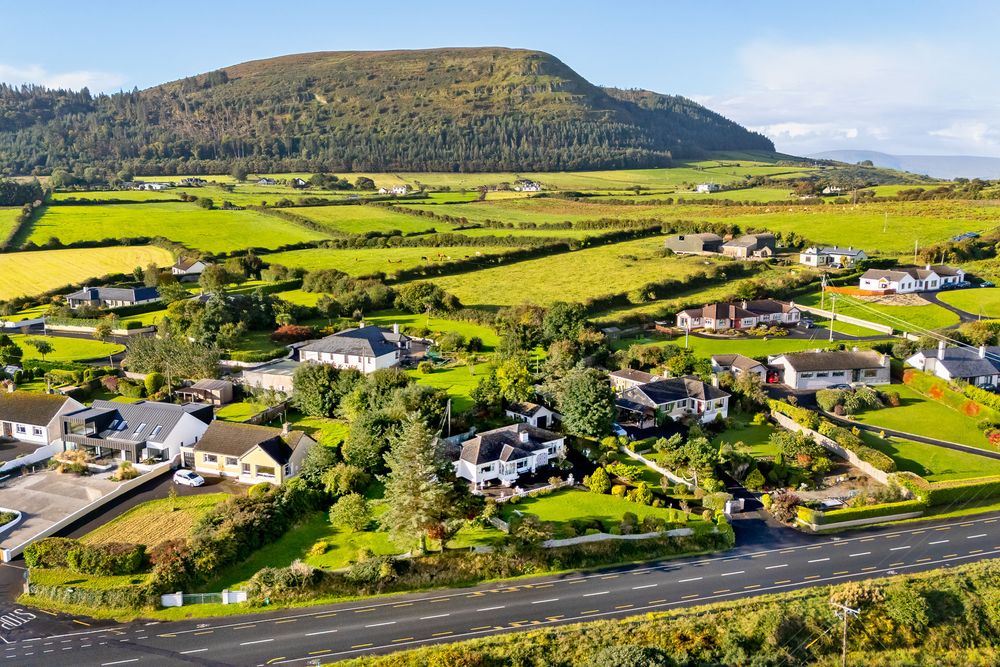 Windrush, Lecarrow, Strandhill is a truly special four-bedroom family home set in one of Sligo’s most breathtaking locations. Nestled just below Knocknarea Mountain on an elevated site, the property enjoys panoramic views across Sligo Bay and the majestic Benbulben Mountain. The setting is both peaceful and inspiring, offering an idyllic backdrop to everyday living. Inside, entering through a double glazed entrance porch to a charming dining room with carpet flooring, a feature open fireplace, and a large front-facing window that perfectly frames the sweeping views. An archway leads into a study with built-in storage, flowing through to a welcoming living room, complete with a feature fireplace and another picture window, making it the ideal cosy retreat. The kitchen dining room is beautifully appointed with a fully fitted wooden kitchen, quartz countertop, tiled flooring, and a fireplace, with direct access to a utility room featuring a Belfast sink. Off the kitchen lies a warm and cosy sitting/TV room with solid cherrywood flooring. The property offers four comfortable bedrooms, each with its own sink, alongside a spacious family bathroom, an additional WC, and a hot press. Outside, the home continues to impress with two patio areas, one to the front and one to the rear, perfect for entertaining or simply enjoying the mature gardens, which provide privacy and feature a selection of fruit trees. Additional amenities include a shed with electrics, a garage with loft storage, and a separate boiler house. Perfectly located, Windrush is just a 5-minute drive to the vibrant seaside village of Strandhill and less than 10 minutes to Sligo town centre, combining rural tranquillity with convenient access to all local amenities. This is a rare opportunity to own a home in one of the North West’s most stunning settings. To arrange a viewing please contact Oates Breheny Group Sligo on 071-9140404.