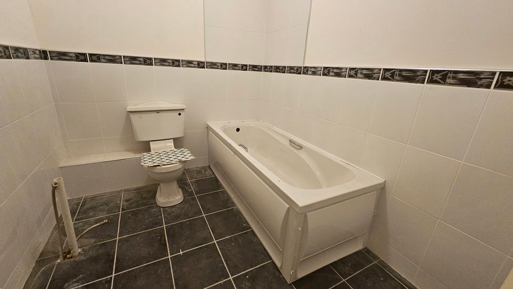Tiled floor, bath, plumbed for wc in place, plumbed for whb, radiator, shaving light with socket.