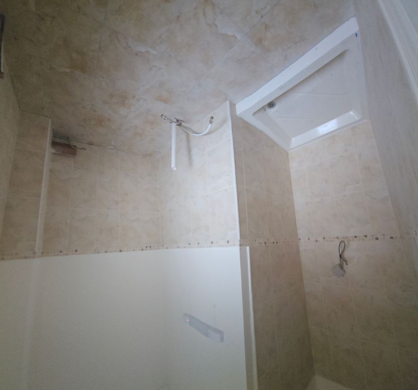 Tiled floor, part tiled walls, tiled shower cubicle, shower tray, plumbed and wired for an electric shower, plumbed for a wc, whb and radiator, shaving light and socket.
