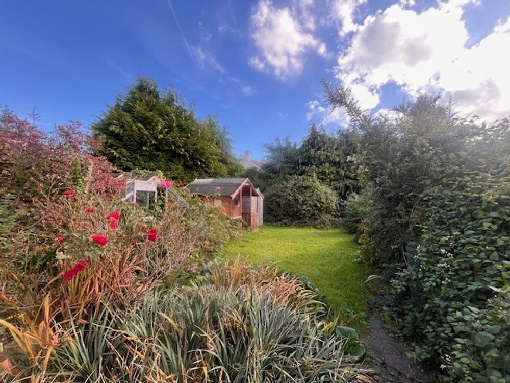 Number 34 is quietly secluded far from the road in front with high mature hedging adding plenty of screening and privacy. A paved parking apron provides excellent off street parking for a number of cars. With low maintenance in mind an extensive gravelled area lies to one side and features a specimen tree to add interest. A gated side entrance leads to a truly wonderful rear garden which really is a delight with its sunny southerly aspect and boasting plenty of room for children to play on the extensive lawns. Here mature plants and shrubs add a splash of colour throughout the year. There is obvious potential to extend the already spacious footprint with an extension to the rear while still leaving you with a super spacious garden to enjoy. Two timber sheds provide ample outdoor storage for all your gardening needs.