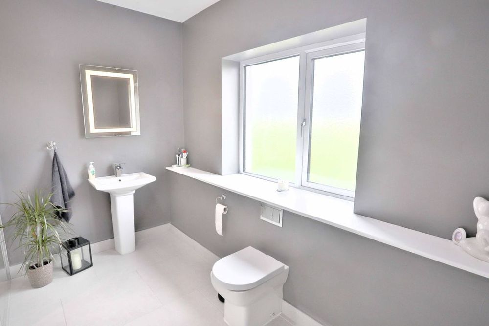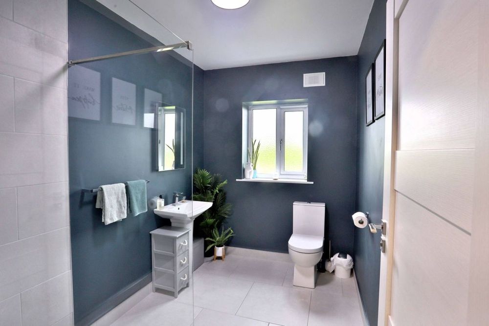 The guest WC finished in a stunning modern palette and complete with designer fittings and a walk-in rainforest shower continues the theme of perfection.