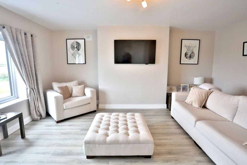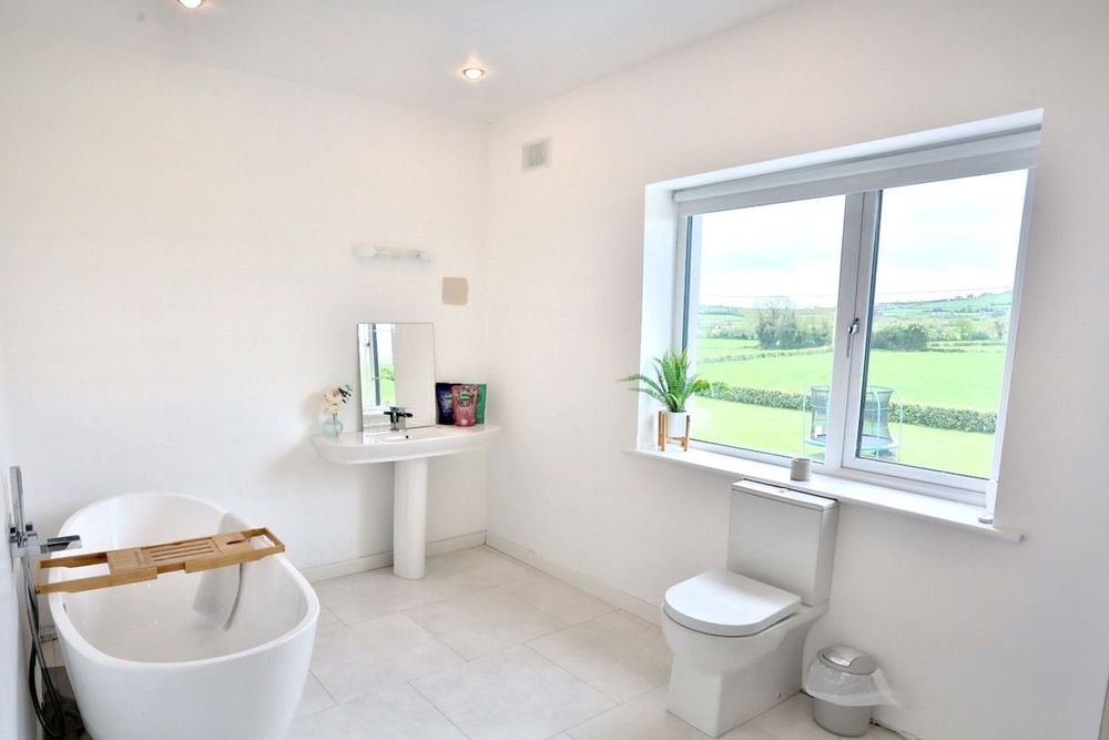 And whilst the front of the house is jawdroppingly beautiful, nothing can prepare you for what awaits in the kitchen. Think every stunning kitchen that was ever Instagrammed or Pinterested and double it. This is the masterpiece. The totally perfect kitchen. Complete with yards of luxury quartz, an island unit big enough for a dinner party, the best of high-end appliances. It's all here. And to cap it all the massive picture windows and large patio doors allow in the most stunning views across Killone Hill and The Great Heath.