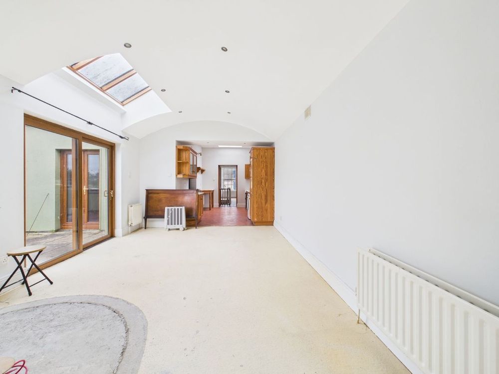 The spectacular staircase leads to a stunning three-bedroom townhouse which has been extended and refurbished in recent years. A magnificent barrel roofed kitchen living space opens onto a large roof garden and also enjoys a Juliet balcony.