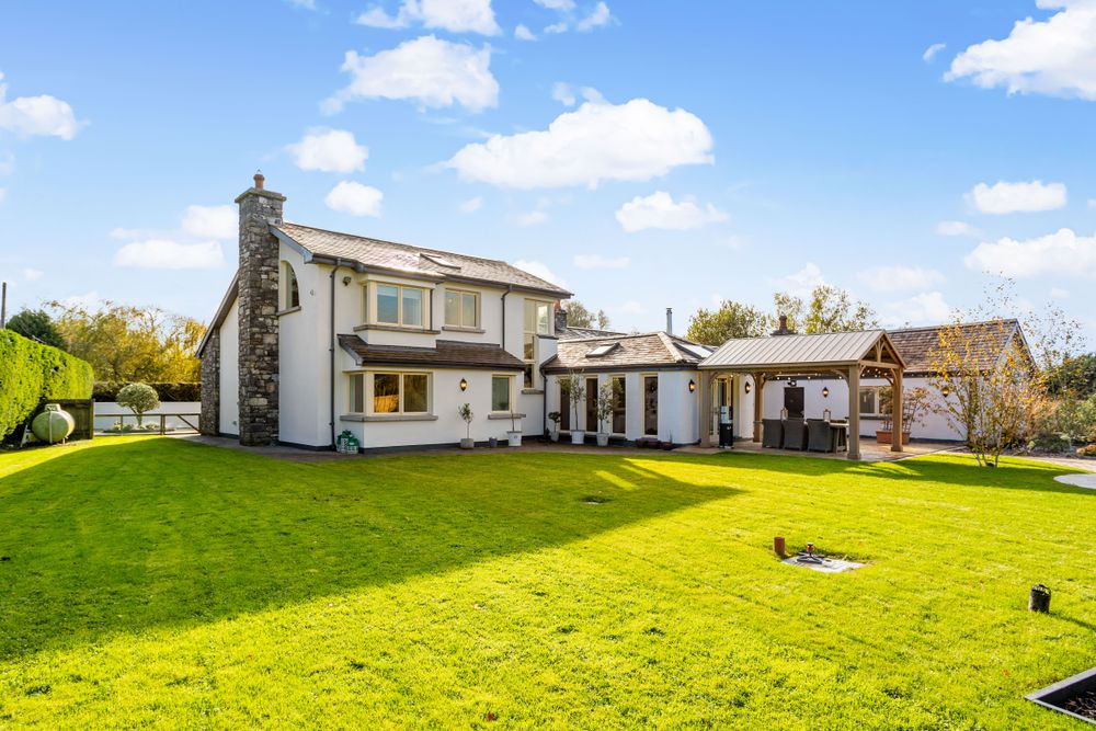 To the rear, the beautifully landscaped private garden creates a serene outdoor haven, complete with a covered pergola area ideal for dining and entertaining. A detached Seomra offers versatile use as a home office, gym, or studio, providing additional flexibility for modern living. This private property has electric gates completes the picture of this impressive family home, where luxury, practicality, and craftsmanship unite to perfection.