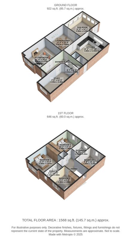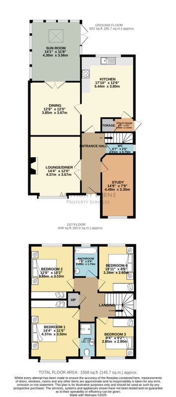 Consisting of: Hall, Living room, Kitchen/Diner, Master Bedroom (ensuite) Bedroom 2 (built in storage), Bedroom 3(built in storage), Bedroom 4(built in storage), office, Family Bathroom, utility and WC.