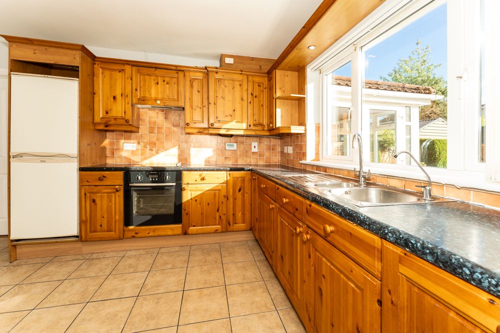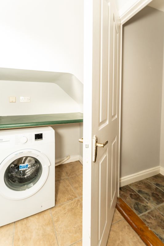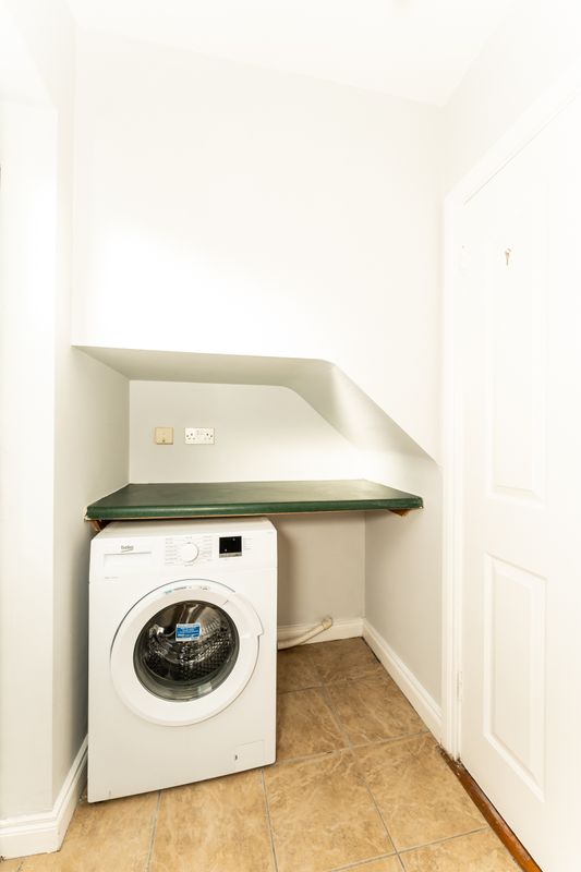 Fully fitted solid kitchen units, electric hob & hoof, extractor fan, tiled floors and splashback.