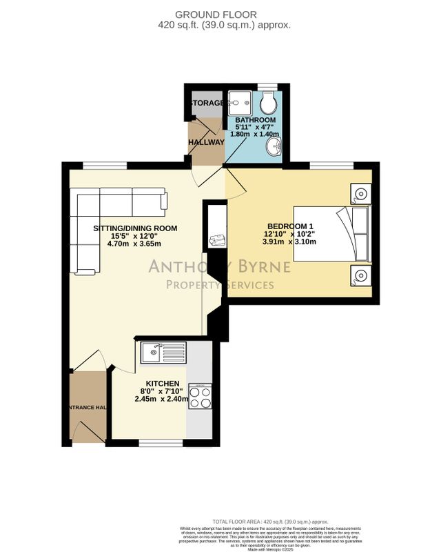 Consisting of an Entrance hall, Living room, Kitchen, Bathroom and Bedroom.