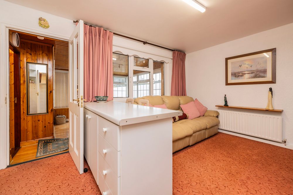 Wonderful bright living space with a picture window overlooking the front garden and flooding the room with natural light, an attractive feature fireplace with marble surround, hearth and mantle creates a cosy central focus point.