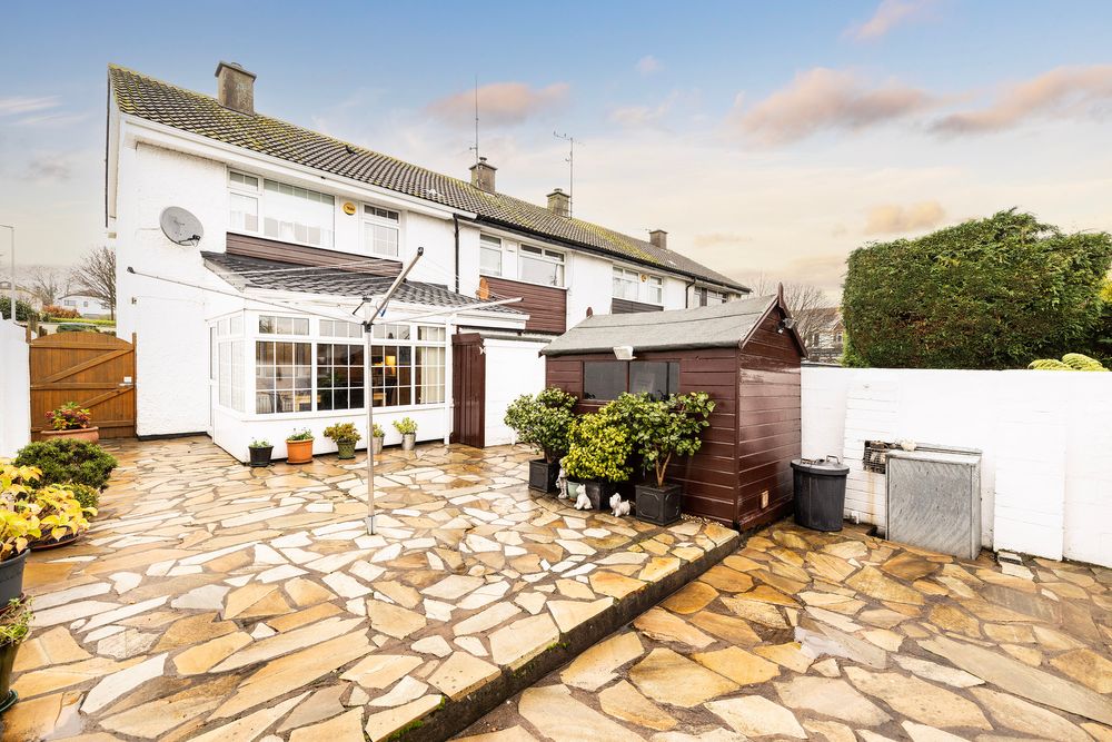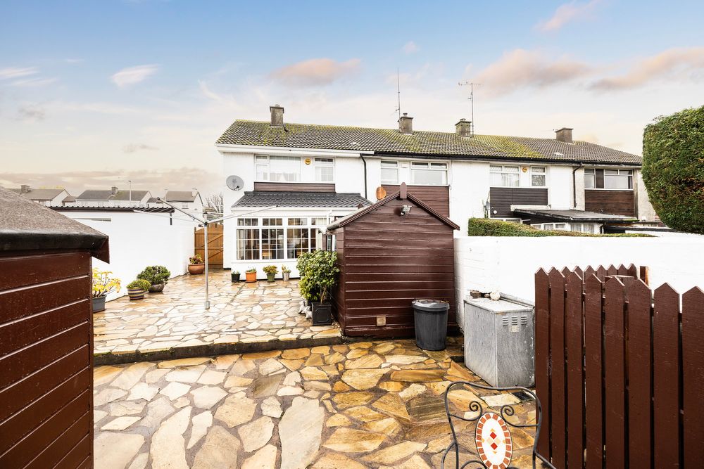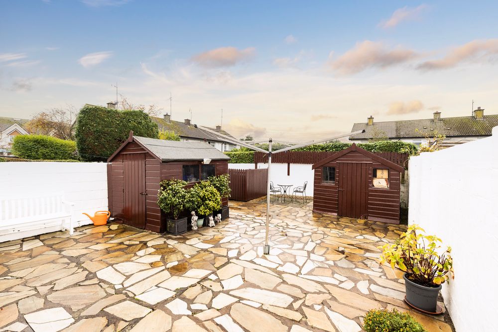 Number 24 is nicely positioned beyond low painted walls, a pedestrian wrought iron gate provides access to a pathway to the front door. The garden has been beautifully landscaped with extensive gravelled areas well stocked with mature plants and shrubs adding a splash of colour throughout the year. A timber gate provides side access to the rear garden. With low maintenance in mind, the entire rear garden is paved in warm shades of stone, creating an outdoor dining room perfect for al fresco dining or an ideal space to sit back and relax. The garden boasts a wonderful sunny southerly orientation drenching it in sunshine throughout the day. The garden is fully enclosed with high block built walls adding screening and privacy from the adjoining homes.
