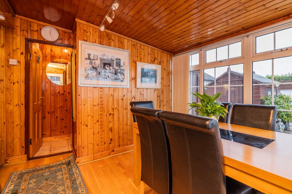 This separate dining room is flooded with natural light with dual aspect windows overlooking the rear garden, at foot timber flooring provides a practical yet stylish statement. Door to rear garden here also.