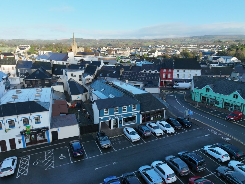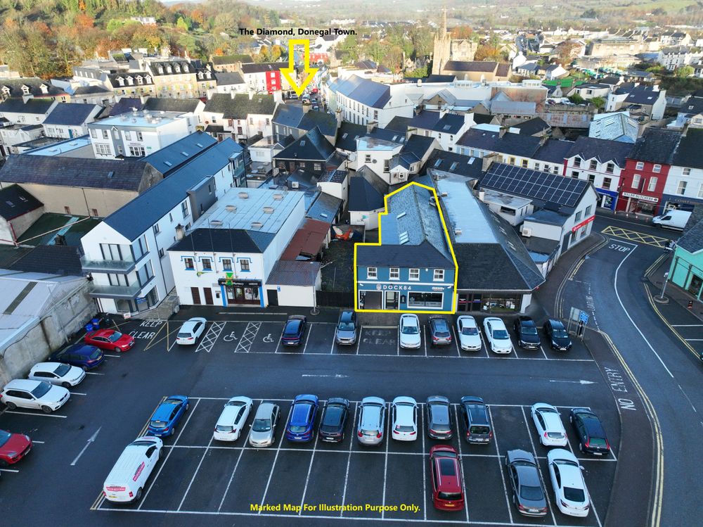 A rare opportunity to acquire a landmark property in the heart of Donegal town. Formally trading as a successful family run 100 seater restaurant, this substantial modern commercial premises is now available for sale or lease, offering an exceptional prospect for hospitality, retail, or mixed-use development (subject to planning). The building retains a high-quality fit-out from its previous use, with spacious open-plan dining areas, customer toilets on two levels, and extensive fully fitted kitchen on the ground floor and first floor together with office, staff room and storage facilities. Access is excellent, with a prominent street frontage onto a large carpark, together with full right of way pedestrian access to the Diamond via Charlie's Lane. This is unique opportunity for occupiers or investors alike to secure a high-profile premises in a thriving town centre location, Viewing of this exceptional property is highly recommended and strictly by appointment with sole selling agents.