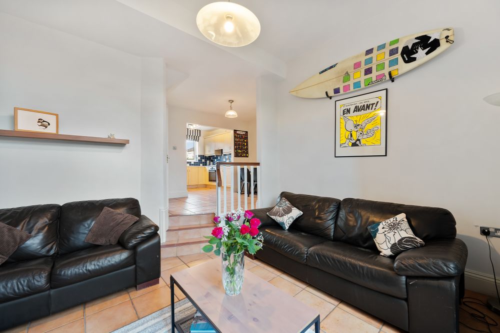 An unusual feature of this home is that it offers living space on both the ground and first floor: the ground floor is open plan whilst the first floor living room is completely private. It has an impressive B3 energy rating, automatically qualifying for a green mortgage, allowing would-be buyers to avail of an attractive lower interest rate. Features of this home include a fully fitted kitchen with all appliances, feature fireplaces with gas inset fires in both living rooms and fitted wardrobes in all three double bedrooms. All bathrooms are tiled in an appealing fresh white tile.