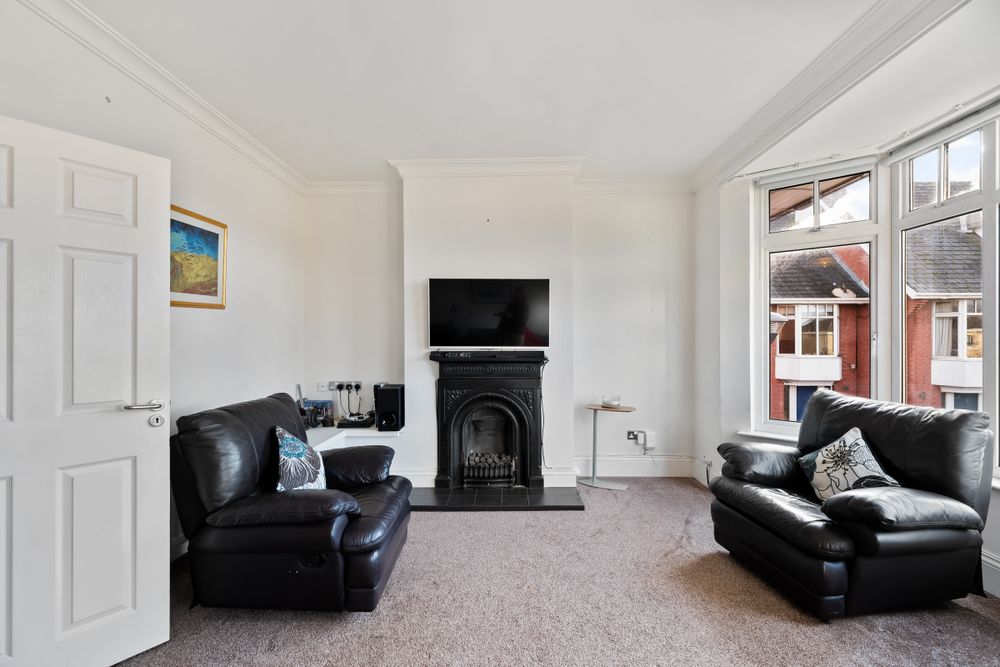 Extending the full width of the house and accessed by double doors this beautiful room offers a tranquil space for relaxation. Similar to its sister fireplace in the downstairs reception room the fireplace is finished in black cast iron with black tiled hearth. Fitted with inset gas fire. A deep set bay window coupled with a second large window ensures this room is bright throughout the day. Finished with carpet and tastefully decorated this room is simply beautiful. A glass panel above the double doors allows for additional light to flow through this 1st floor.