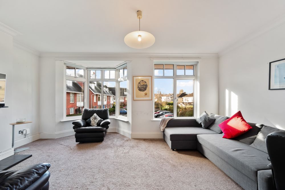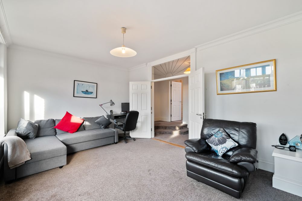 Stairs lead from the hall to a spacious landing on the 1st floor. Carpeted in neutral tones, the landing area leads to a second Living Room and Master Bedroom. The landing could be an ideal home office or study space.