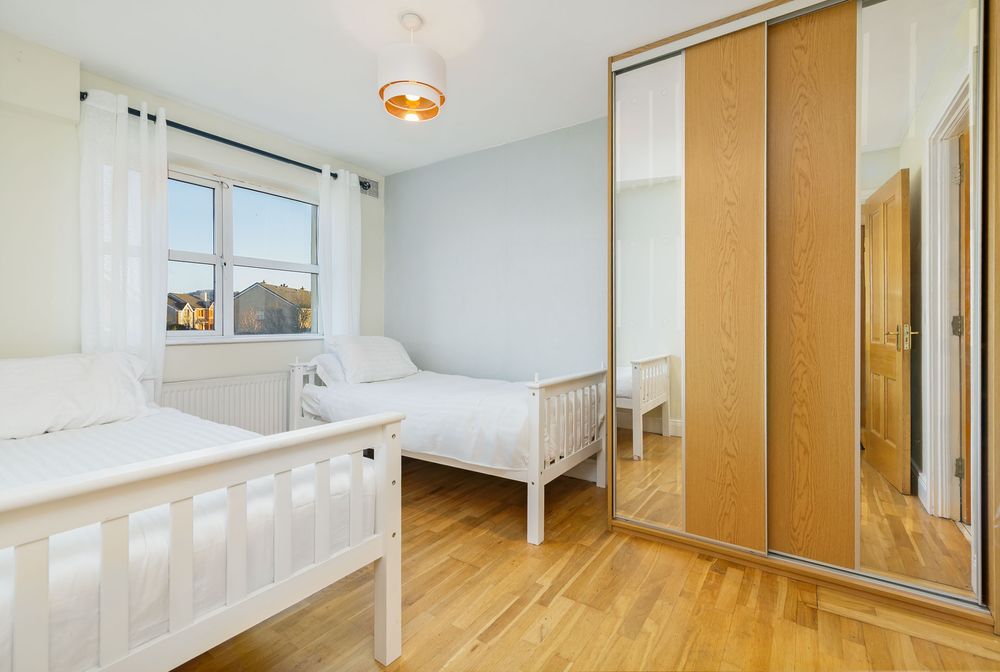 Large double room with solid Pine wood flooring. Slide Robes with additional wardrobes and storage space around bed area. Single Beds not included in sale.