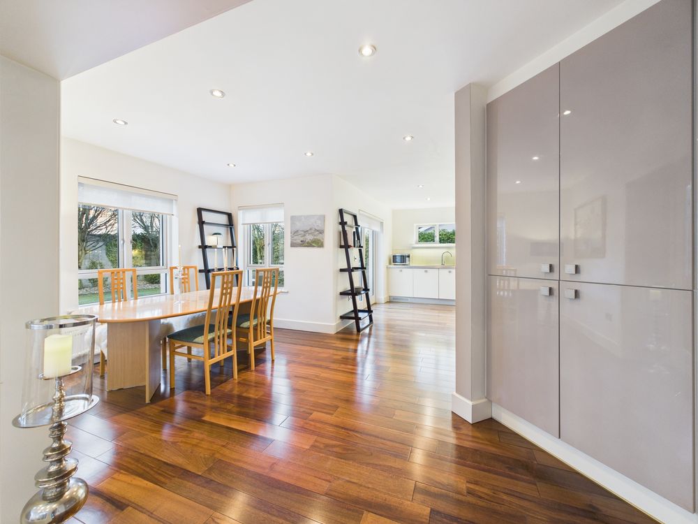 The quality and design continues through to the massive Kitchen dining room. Once again, the detailing in sublime. Luxury appliances compliment a stunning fitted kitchen, and the entire room is beautifully lit with designer lighting and an abundance of natural light flooding from the patio doors.