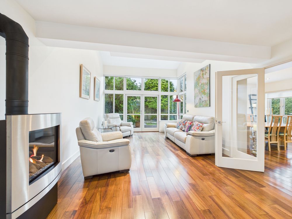 With a massive dual aspect stretch, feature galleried balcony, designer stove with driftwood finishes, double height glazing and that magnificent flooring, this is a room you will never want to leave.