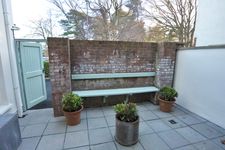 15.Built-in teak slatted bench in the courtyard garden at front of the house.