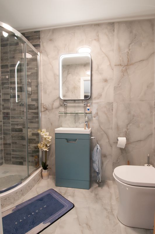 There are two generous double bedrooms, both fitted with built-in wardrobes. The master bedroom benefits from a fully refurbished ensuite bathroom, while the main bathroom has also been completely upgraded, finished to a modern, high-quality specification.