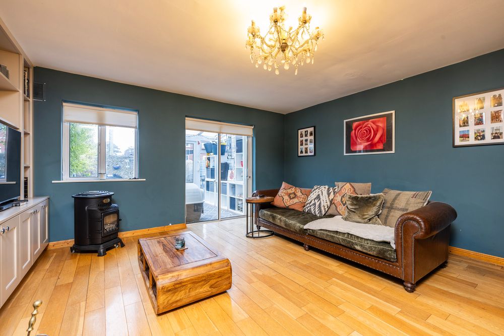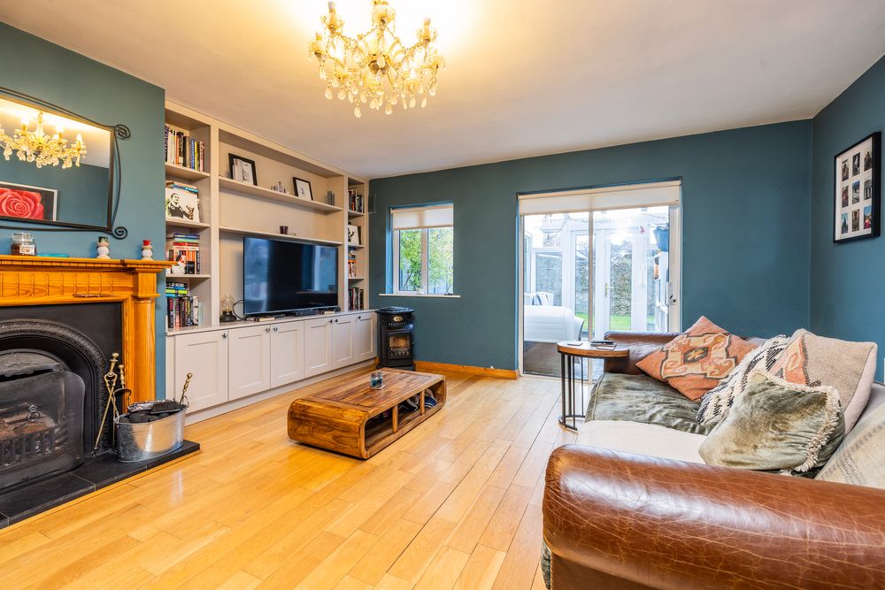 organizes media equipment, hide cables, decluttering your living space, while creating a stylish statement that enhances the rooms decor. At foot warm semi solid oak timber flooring adds to the cosy ambience while reflecting the light perfectly. Window overlooking the rear garden and door to sunroom.