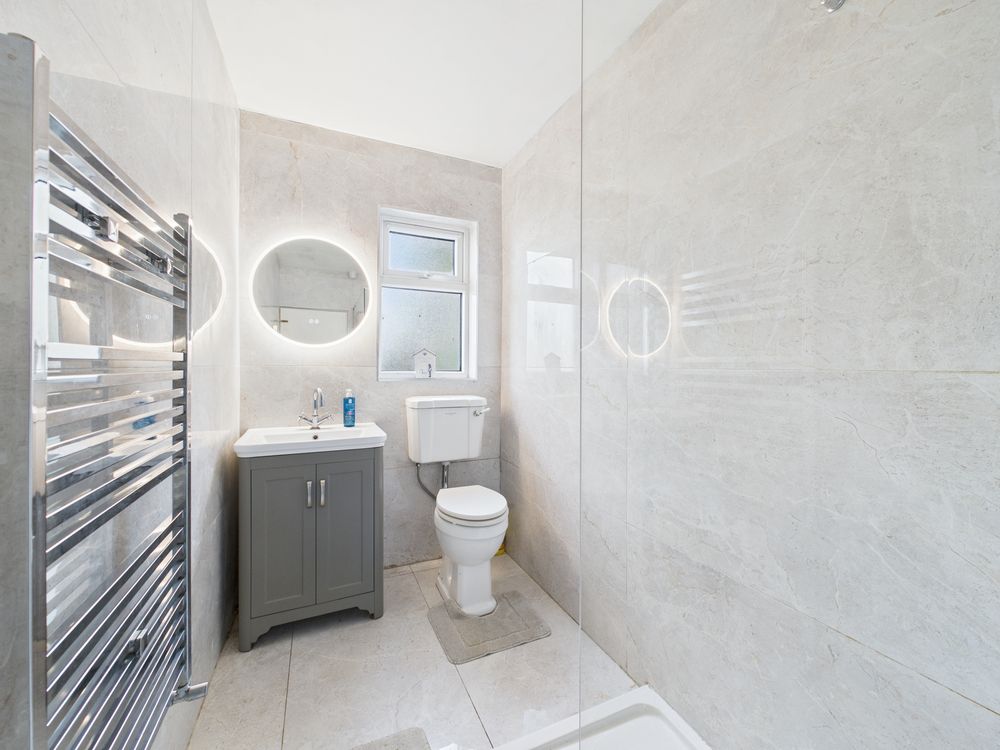 The main bathroom has been recently upgraded and is finished to a modern standard, featuring full-height tiling, a walk-in shower enclosure, contemporary sanitary ware and a heated towel rail. In addition, there is a separate WC, adding further convenience for family use and visiting guests.