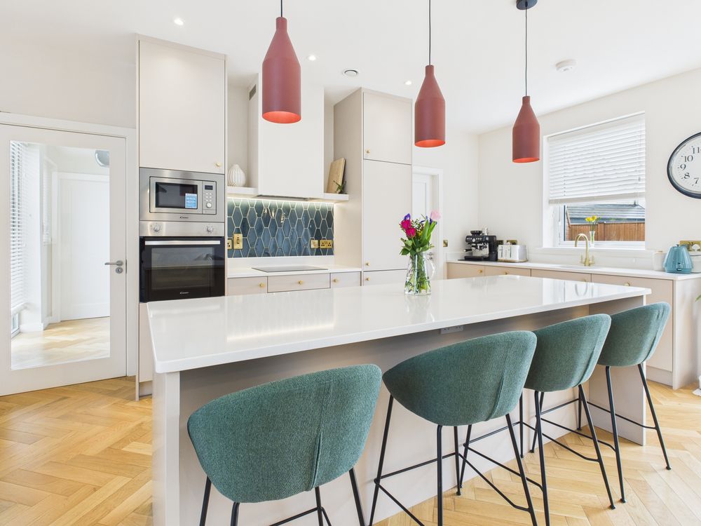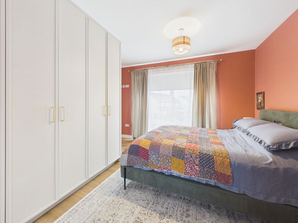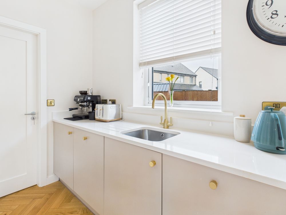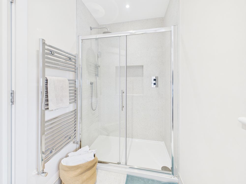 Internally, the home has been designed to meet contemporary living expectations. The ground floor features engineered wooden flooring, a bright and spacious open-plan layout, and a bespoke built-in TV unit. The property extends to four well-proportioned bedrooms and three bathrooms, including two showers, providing excellent flexibility for growing families.