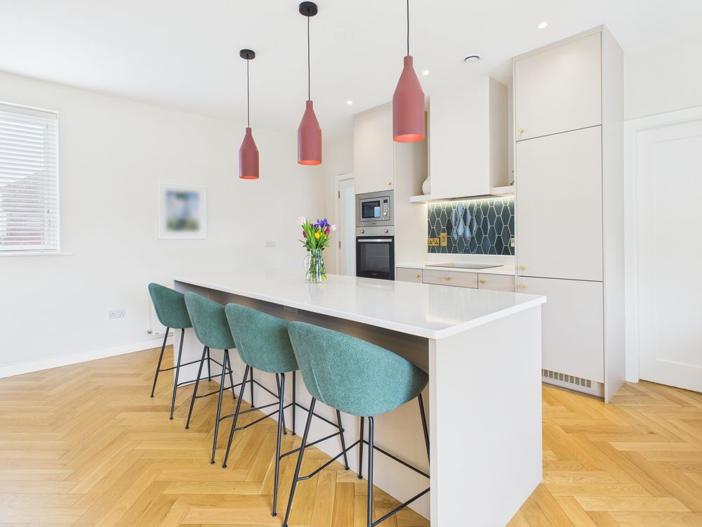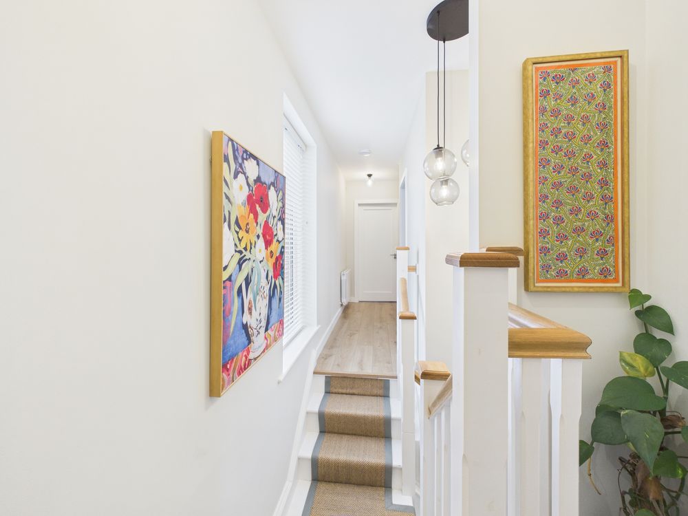 Quality is evident throughout, with high-spec kitchens and bathrooms, blinds fitted throughout the home, and premium painting finishes internally. The nursery has been tastefully panelled, adding character and warmth. The southwesterly-facing landscaped garden maximises afternoon and evening sunlight and includes a garden shed, creating a highly functional and low-maintenance outdoor space.