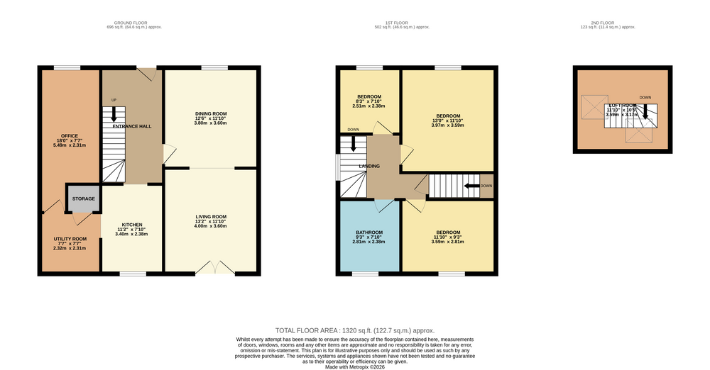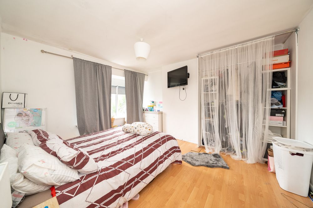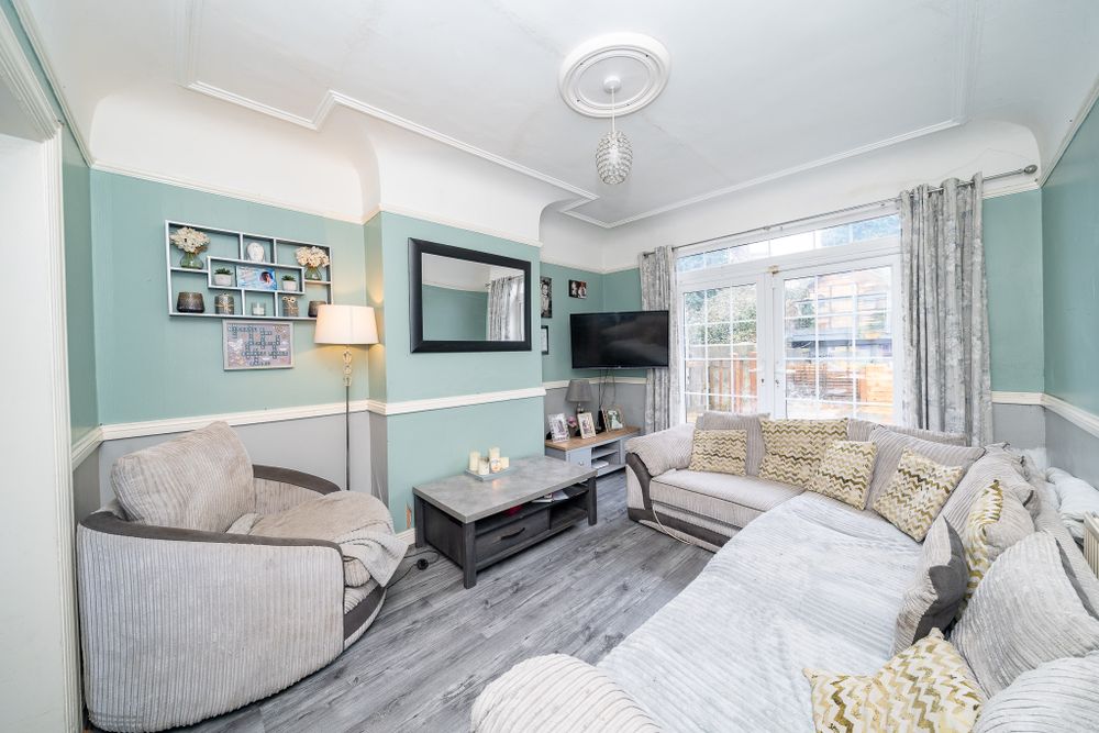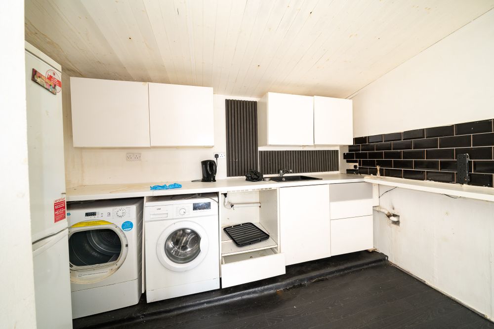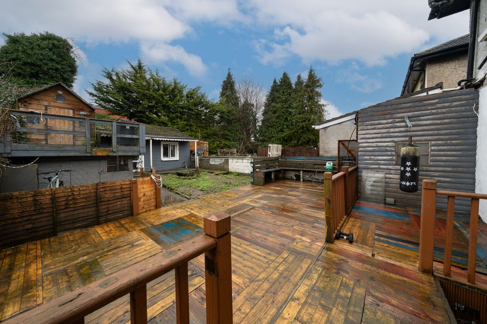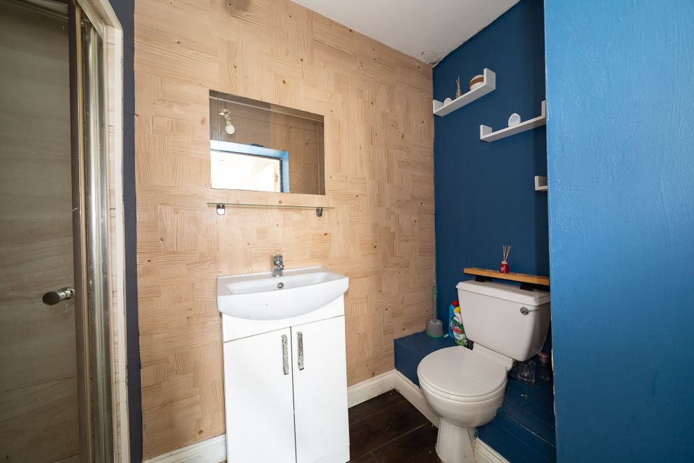 This superb family home enjoys a paved driveway, leading to an attractive facade. The welcoming entrance hall features tiled flooring and provides access to the spacious accommodation throughout. To the left of the entrance, the open plan dining and living room enjoys a charming bay window, feature fireplace, and high ceilings, with laminate flooring extending through the living space. Double doors open from the living area onto a generous rear garden, perfect for outdoor entertaining. The modern kitchen boasts tiled floors, ample counter and storage space, and stylish splashback tiling. An additional room to the side of the property offers the ideal space for a home office or study. Upstairs, there are three well proportioned bedrooms and a family bathroom, complete with a walk in electric shower and a separate bath. The accommodation is further enhanced by a converted attic with a Velux window and extra storage space. No. 18 also benefits from a chalet at the rear of the property, which is fully wired and plumbed.