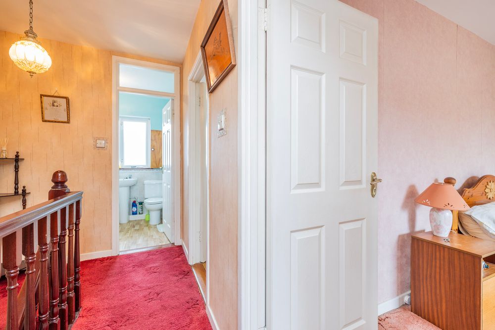 Bright welcoming hallway with wide plank laminate timber flooring perfect for coming inside from outside, a covered understairs storage area provides ample storage for coats and shoes and keeps the hallway clutter free. Carpeted staircase leads to the upper floor.