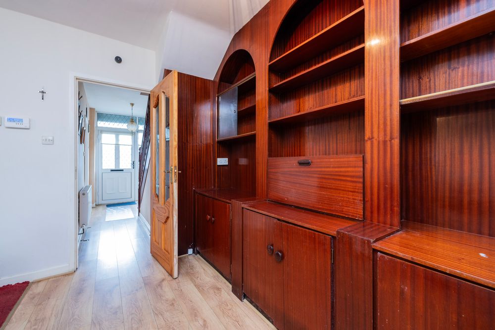 This second reception room is situated to the rear of the property and has a window overlooking the west facing rear garden. Built in cabinets provide plenty of storage and display shelves also.