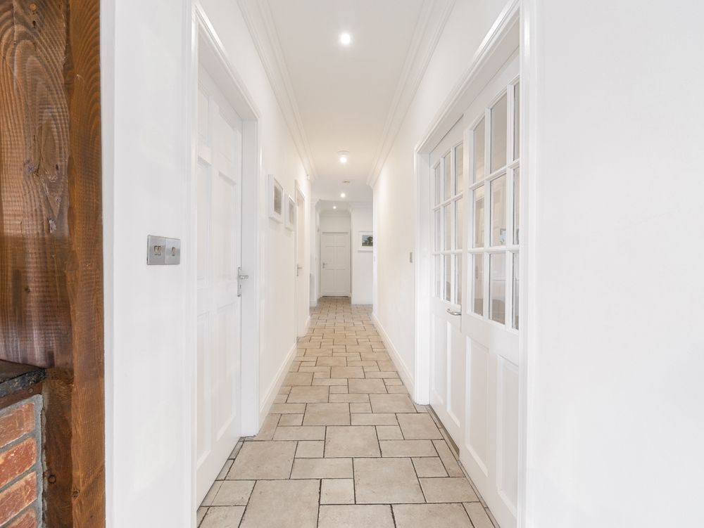 To the right of the hallway, a second reception room provides an additional living space, complete with wooden flooring and a large bay window that enhances light and depth. This versatile room lends itself equally well to use as a formal sitting room, TV room, or games room.