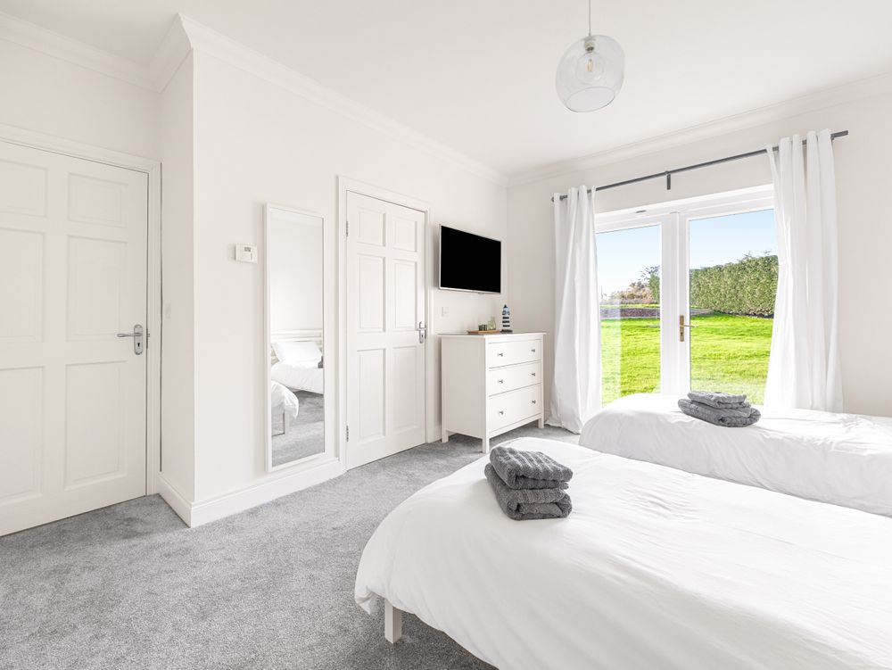 A well-positioned ground floor bedroom with direct access to the downstairs bathroom and patio doors opening to the rear garden adds further flexibility, ideal for guests, multi-generational living, or long-term future planning.