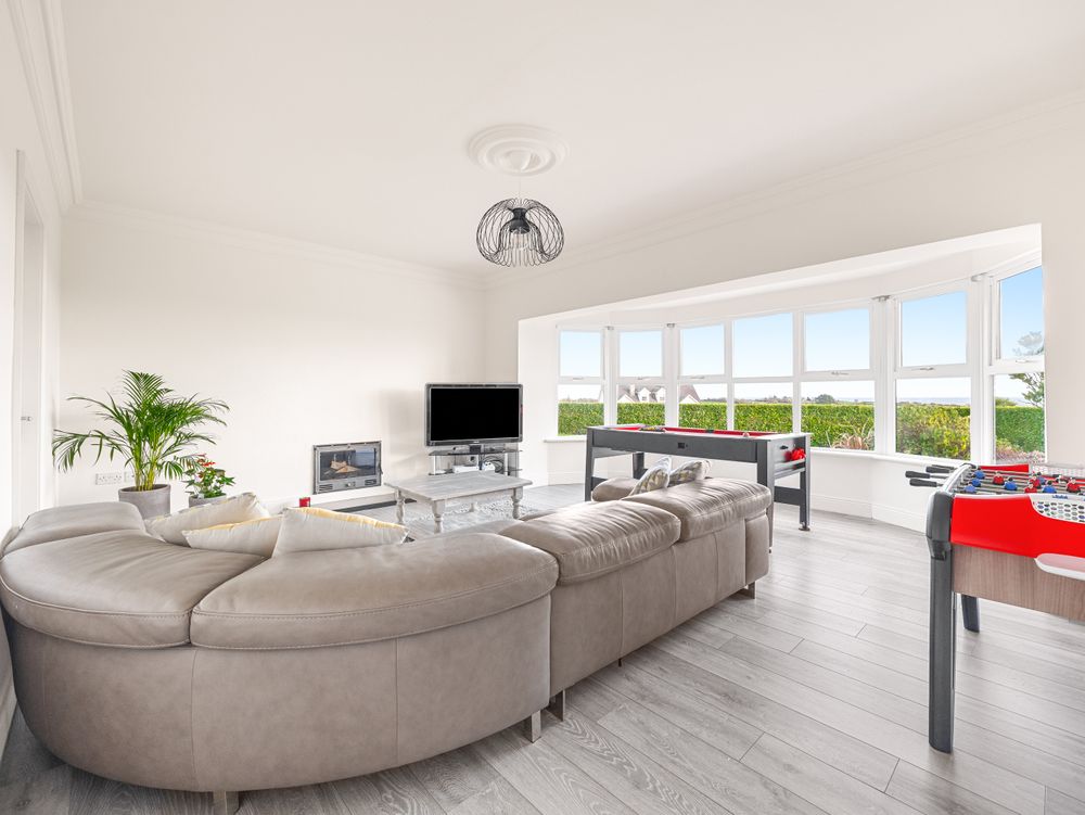 The interior of Sea View House is equally impressive in scale and finish. A tiled entrance hallway creates a bright and welcoming introduction, setting the tone for the quality evident throughout.