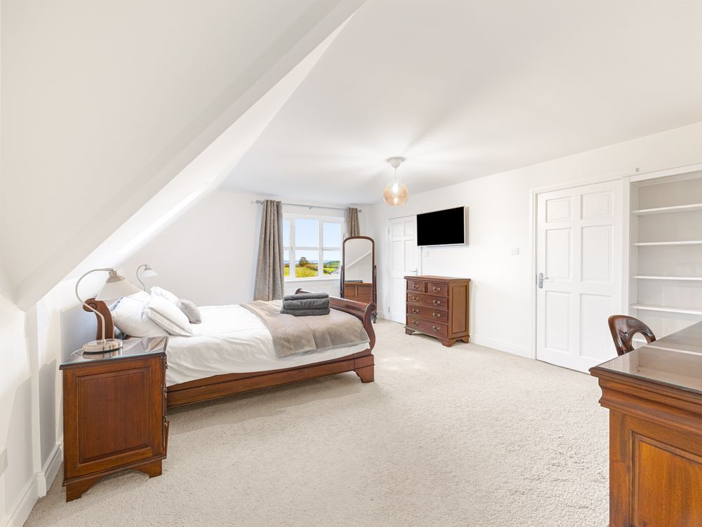 Upstairs, carpeted stairs and landing create a warm and refined ambience. Four generously proportioned bedrooms occupy the first floor, each enjoying open, uninterrupted views of the ocean and surrounding countryside.