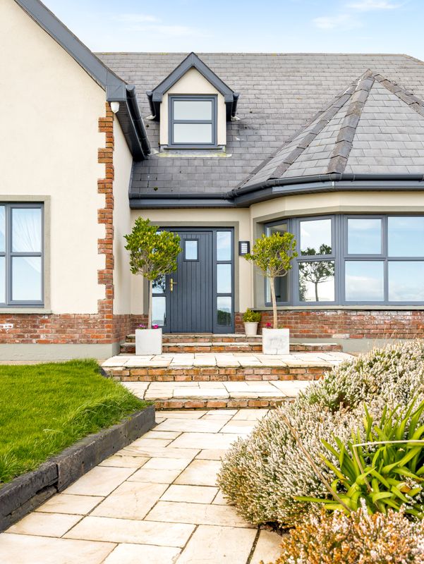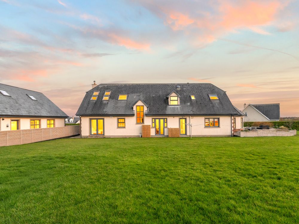 Sea View House is a striking five-bedroom coastal residence extending to approximately 319 m2 (3,433 sq. ft), occupying circa 0.8 acres of elevated, sea-facing grounds with commanding, uninterrupted views across rolling countryside to the ocean. Magnificent panoramic coastal vistas stretch across the horizon, offering a rare combination of scale, privacy, orientation, and natural beauty seldom found in one property.