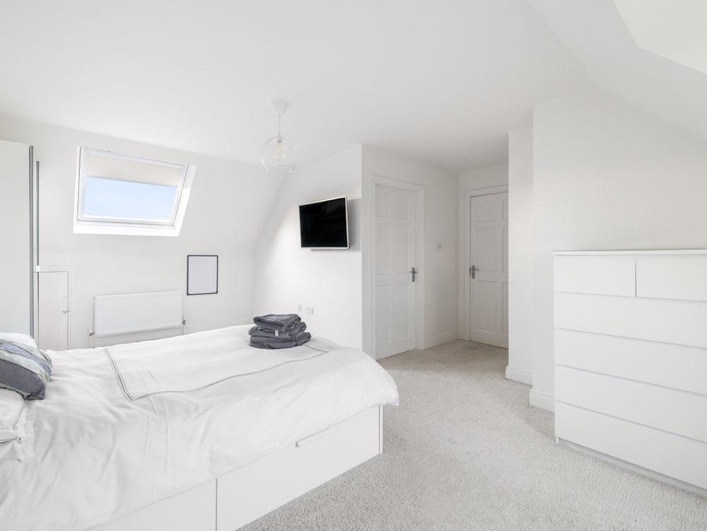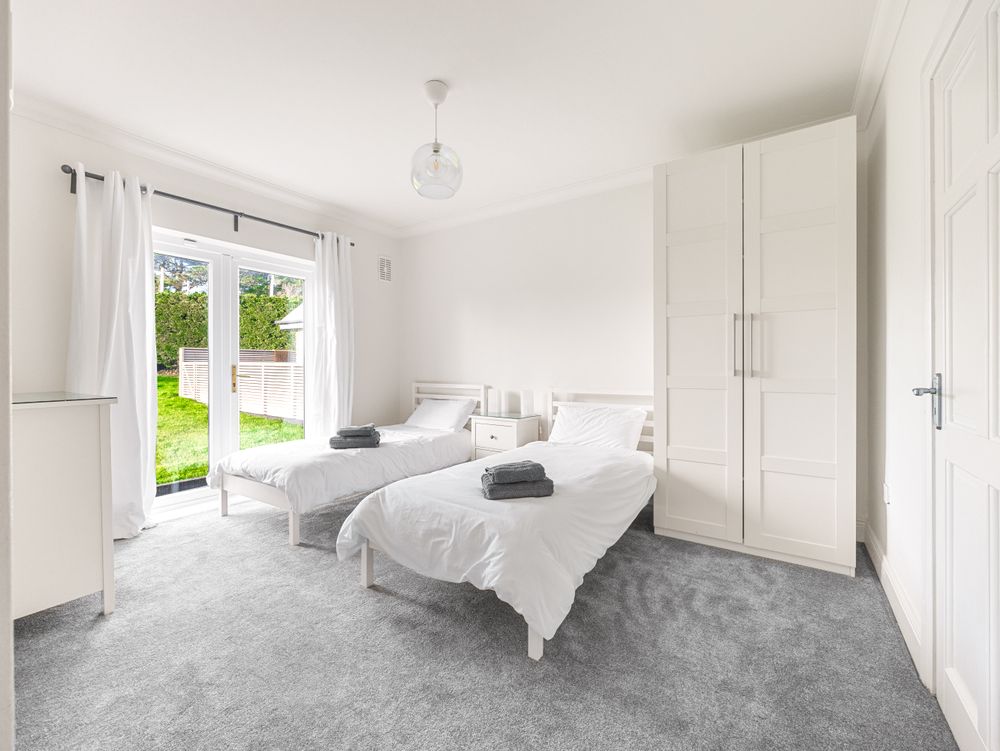 The principal bedroom is a superb private retreat, complete with walk-in wardrobe and beautifully tiled ensuite bathroom. A second bedroom also benefits from its own ensuite, while a large family bathroom services two further spacious bedrooms. Elevated outlooks and natural light enhance the sense of calm and space throughout.