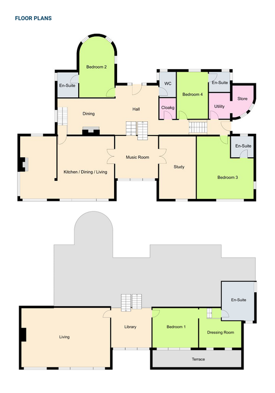 Entrance Hall - (5.00M x 4.22M) Polished Porcelain floor. Stairway down to Morning Room. Stairway up to Library. Double height ceiling. Open plan to Dining Hall.