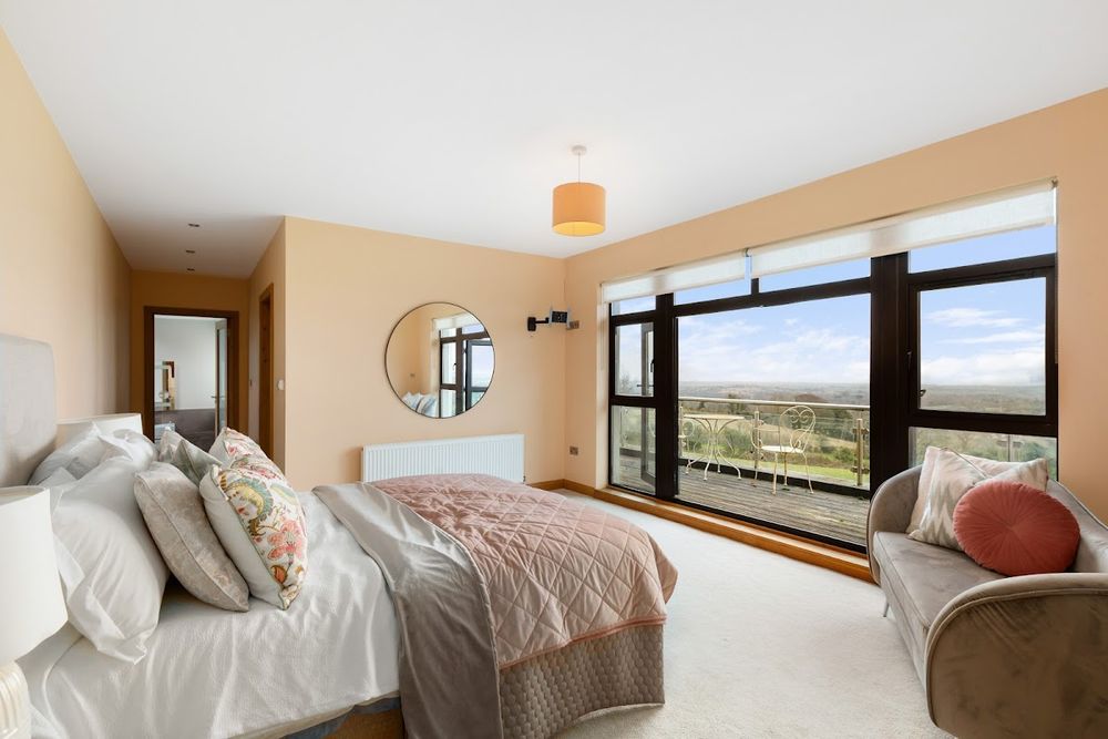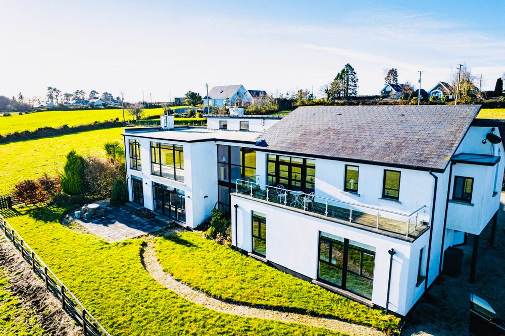“The Birches”, built in 2008, is one of the most prestigious country homes to come to the market in Wexford in recent years. Extending to approximately 419 sq.m (4,510 sq.ft) and finished to exceptional modern standards, this remarkable property offers panoramic views of the Wexford and Wicklow coastline and surrounding countryside from its elevated setting. Views of the mountains of Snowdonia in North Wales on a clear day.