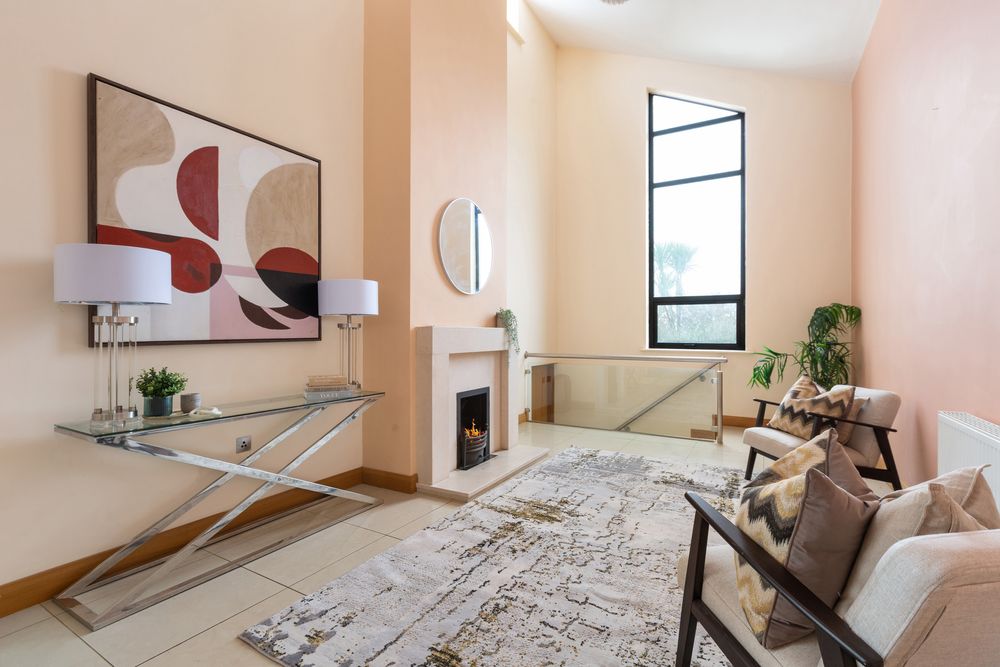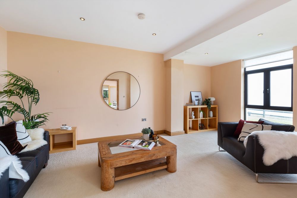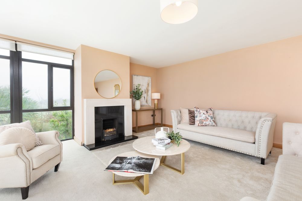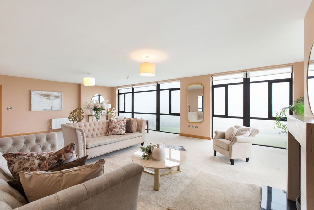 Living Room - (10M x 6.5M) Feature Windows. Double Aspect. Open Fireplace. TV & Phone points.