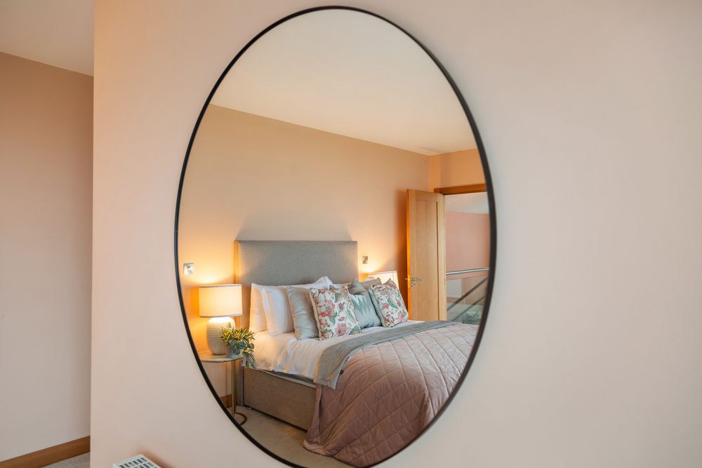 Bedroom 3 - (6.00M x 3.45M) Fitted wardrobes. Floor carpeted. Feature round wall. TV & Phone points.