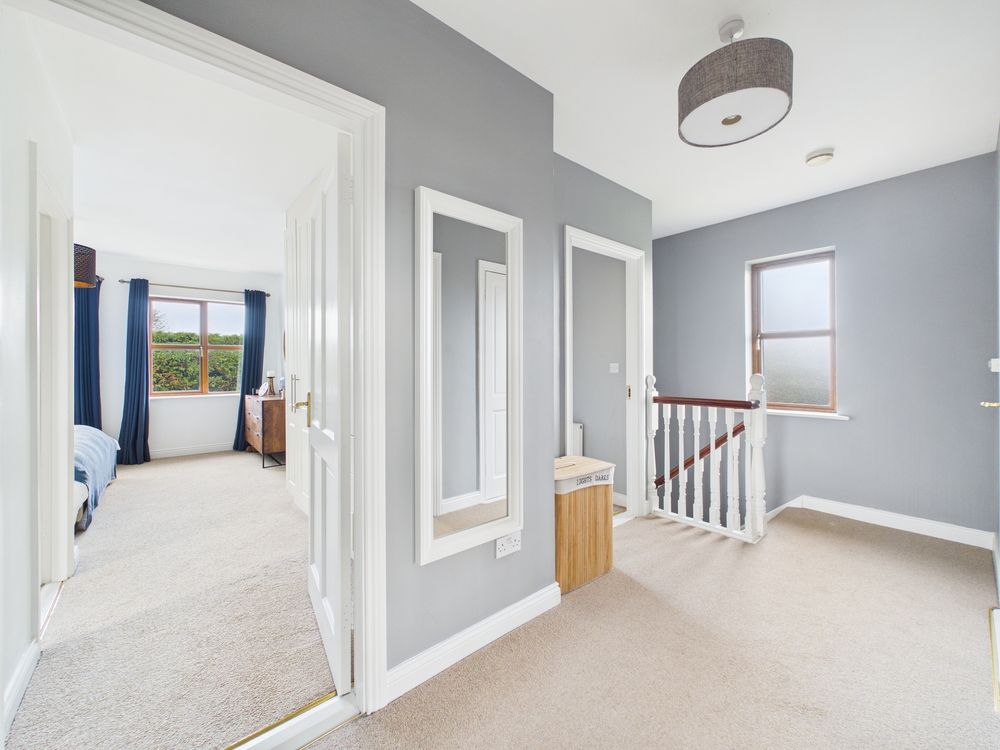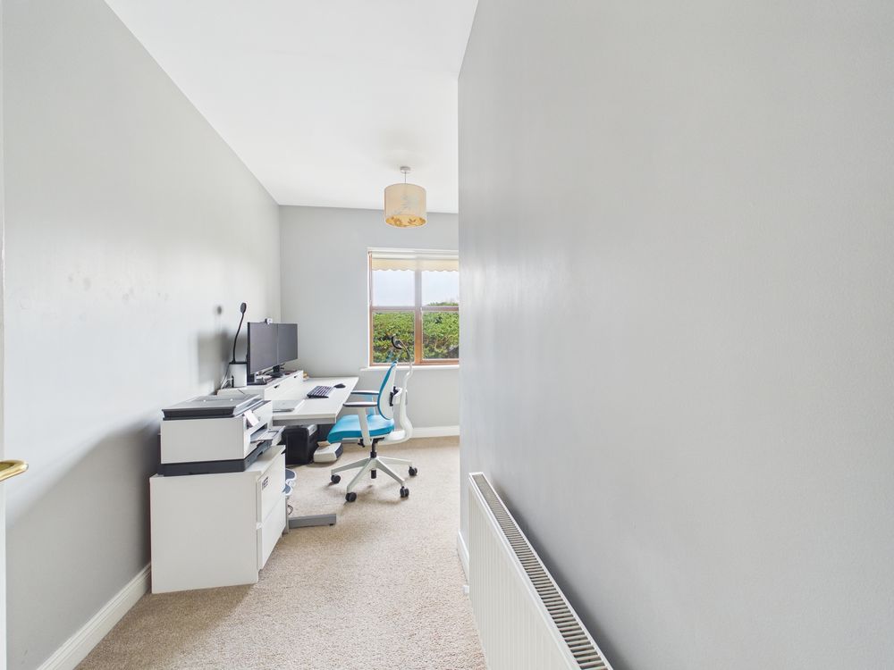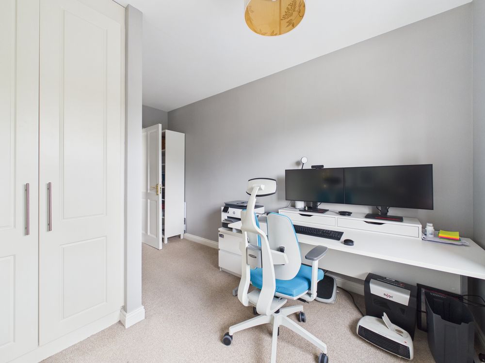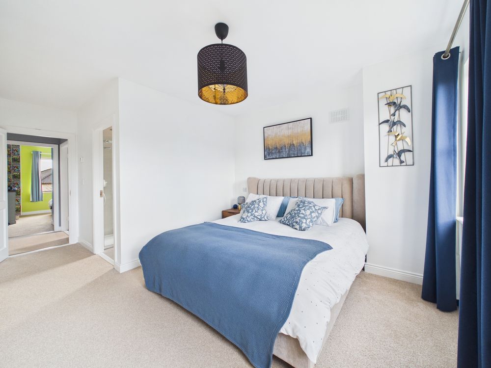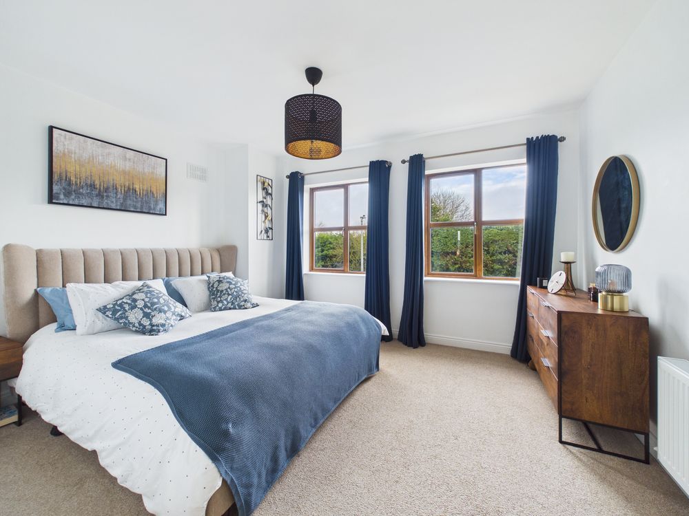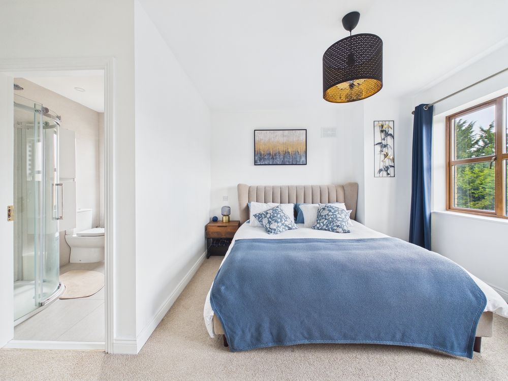 Upstairs, the accommodation continues to impress with spacious, well-proportioned bedrooms finished in a calm contemporary palette. The principal bedroom enjoys fitted wardrobes and a stylish ensuite shower room, while additional bedrooms complete with bespoke wardrobes are bright, comfortable and highly adaptable — ideal for family living, guests or home office use.