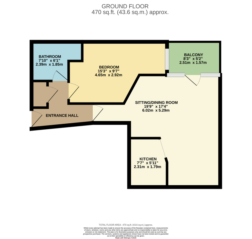 This charming property opens into an L-shaped entrance hall with carpet flooring and a convenient hot press. To the right is a generously sized, fully tiled bathroom, followed by a spacious double bedroom. The bright open-plan living and dining area is filled with natural light and features ornate coving, carpet floors, and an attractive feature fireplace. A sunny balcony overlooks beautifully maintained communal gardens. The accommodation is completed by a recently refurbished L-shaped kitchen, finished with splashback tiling and ample counter and cupboard space.